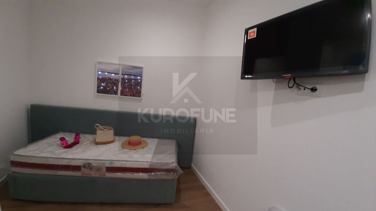 Áreas interiores amplas bem distribuídas, com ótima funcionalidade de espaços, 1 quarto mobilado com roupeiro embutido.