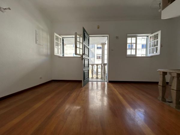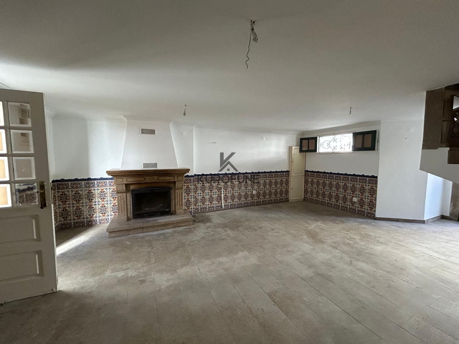 Salão amplo, com excelente potencial para zona de estar e lazer com lareira